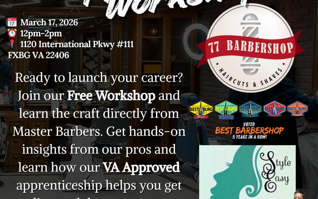 Unlock Your Future in the Beauty Industry! Are you ready to launch a professional career as a barber or cosmetologist? Join 77 Barbershop—voted “Best Barbershop” five years in a row—and Style Easy Education for an exclusive, free workshop designed to jumpstart your journey.