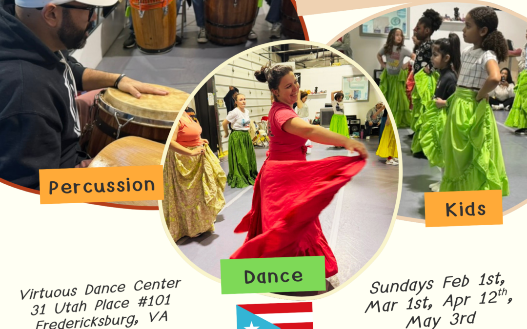 Experience the vibrant music, dance, and rhythms of Puerto Rico with Bomba Sundays in Fredericksburg! Semilla Cultural invites children, teens, adults, and families to explore Afro–Puerto Rican bomba through dance and percussion classes in a welcoming, community-centered space. This seasonal series builds toward an end-of-year showcase and is open to all levels.
