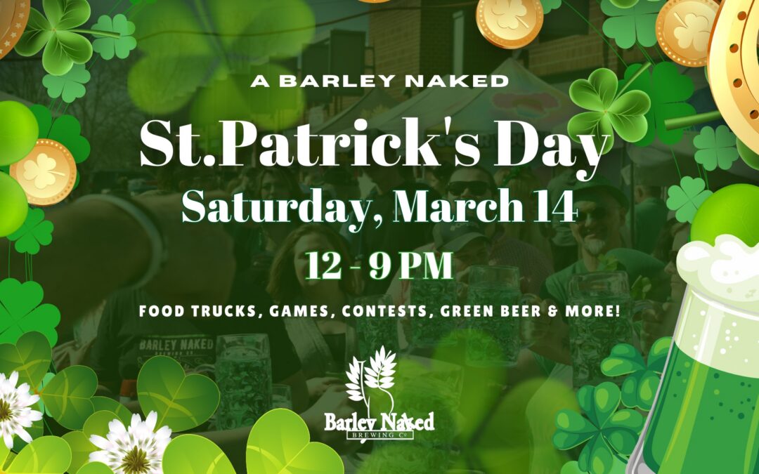 Join us at Barley Naked for an EPIC St. Patrick’s Day Festival! We will have GREEN BEER, food trucks, music, games, contests, Irish Dancers, face painting, permanent jewelry, and SO MUCH MORE! This is one of our biggest events of the year and the whole family is welcome to join in on the fun!