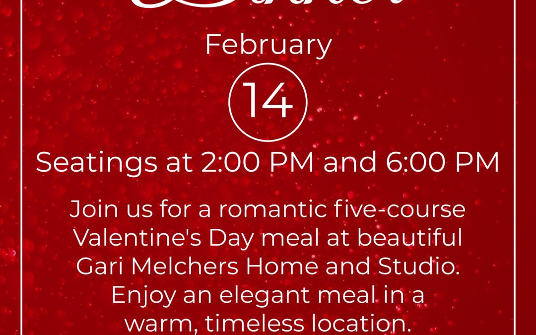 The Valentine’s Day Dinner will feature a special 5-course menu, an elegant atmosphere, live music, and access to Gari Melchers’ Galleries and Studio from 4–6pm. Tickets: $125